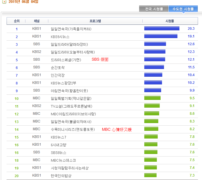 KBS 蒙面檢察官 5.3% (-0.6% ) (未入前20名)