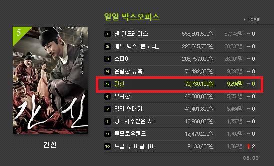 至6/9 累計觀眾人數: 1,034,460 銀幕數:304 (前一天313) 上映次數: 847